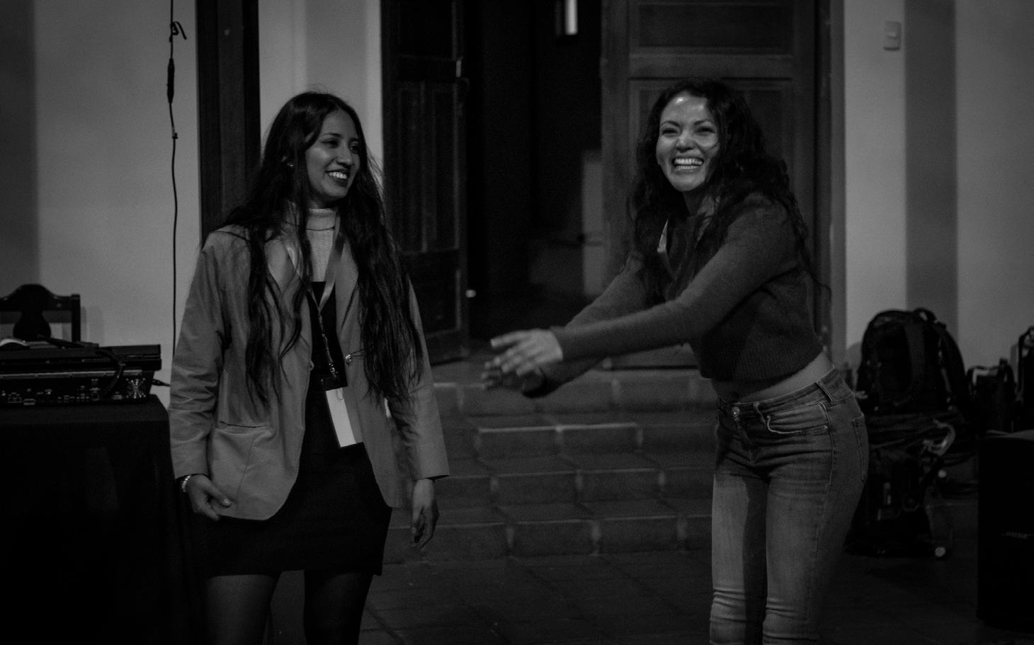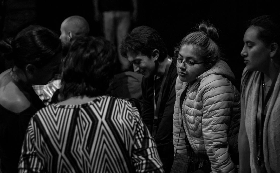 Antes del ensayo en el espacio las bailarinas bromean y comparten para disipar los nervios.
