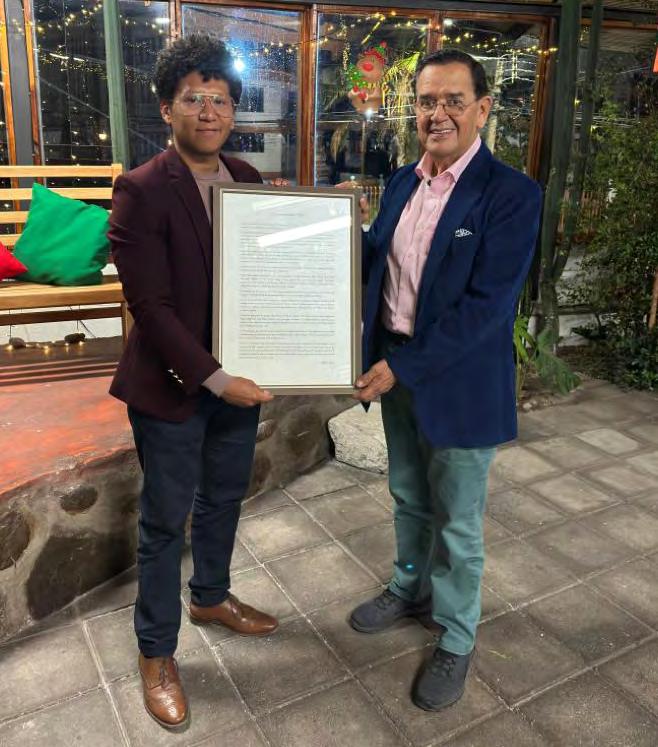 Con el apoyo del Colectivo Reinventar , Rogelio Durán representante juvenil de Ambato, entregó un reconocimiento a Luis Amoroso Mora por sus 50 años de trayectoria dentro de la función pública.
