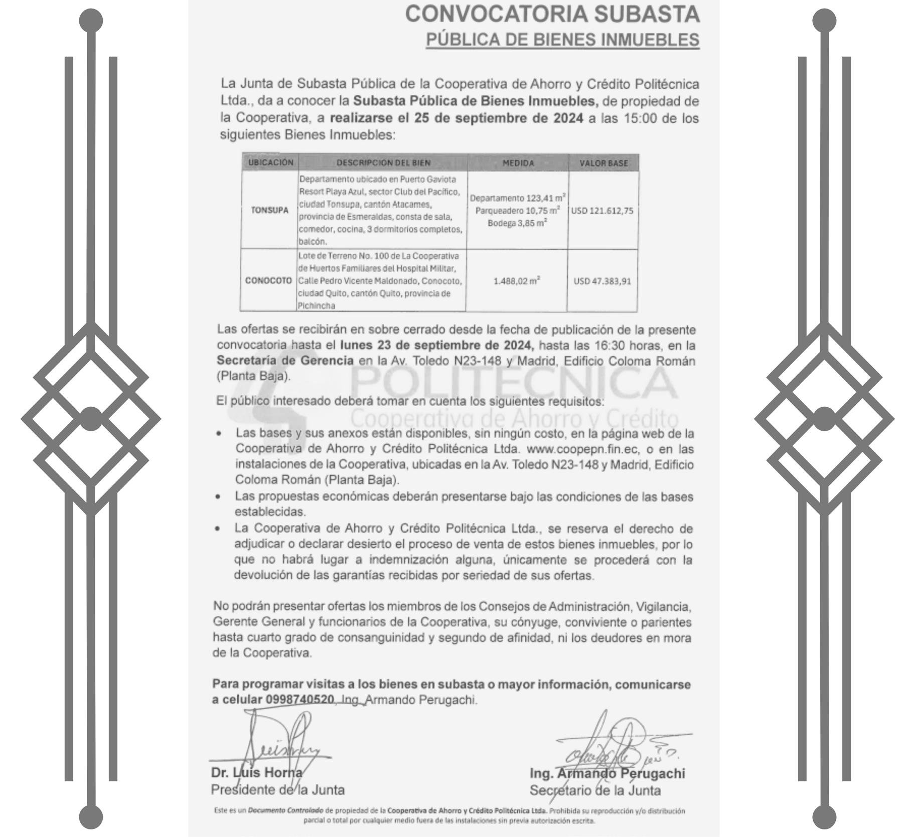 La Cooperativa de Ahorro y Crédito OSCUS Ltda., comunica el extravío/sustracción del Certificado de Depósito a Plazo No 579245 perteneciente a BURGOS TAPIA RICARDO HUMBERTO ROGELIO, por lo que se ha procedido a su bloqueo, en consecuencia, la Cooperativa no asume ninguna responsabilidad, quién considere tener derecho sobre dicho documento deberá presentarse en las Oficinas de la Cooperativa en el plazo de 3 días, contados desde la fecha de la publicación de este aviso. Ambato, 04 de septiembre de 2024