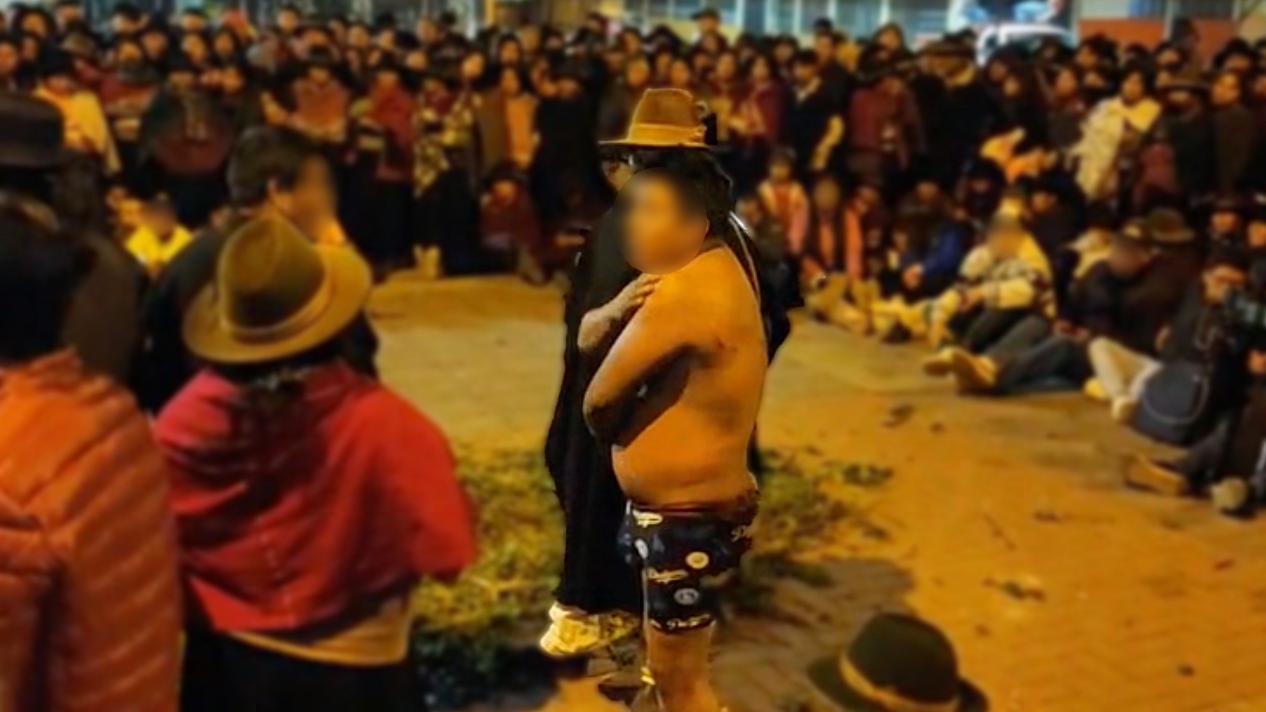 Alrededor de 500 personas estaban en la plaza central de Salasaca de Pelileo, para en asamblea general juzgar un caso de robo de ganado ocurrido en el sector.