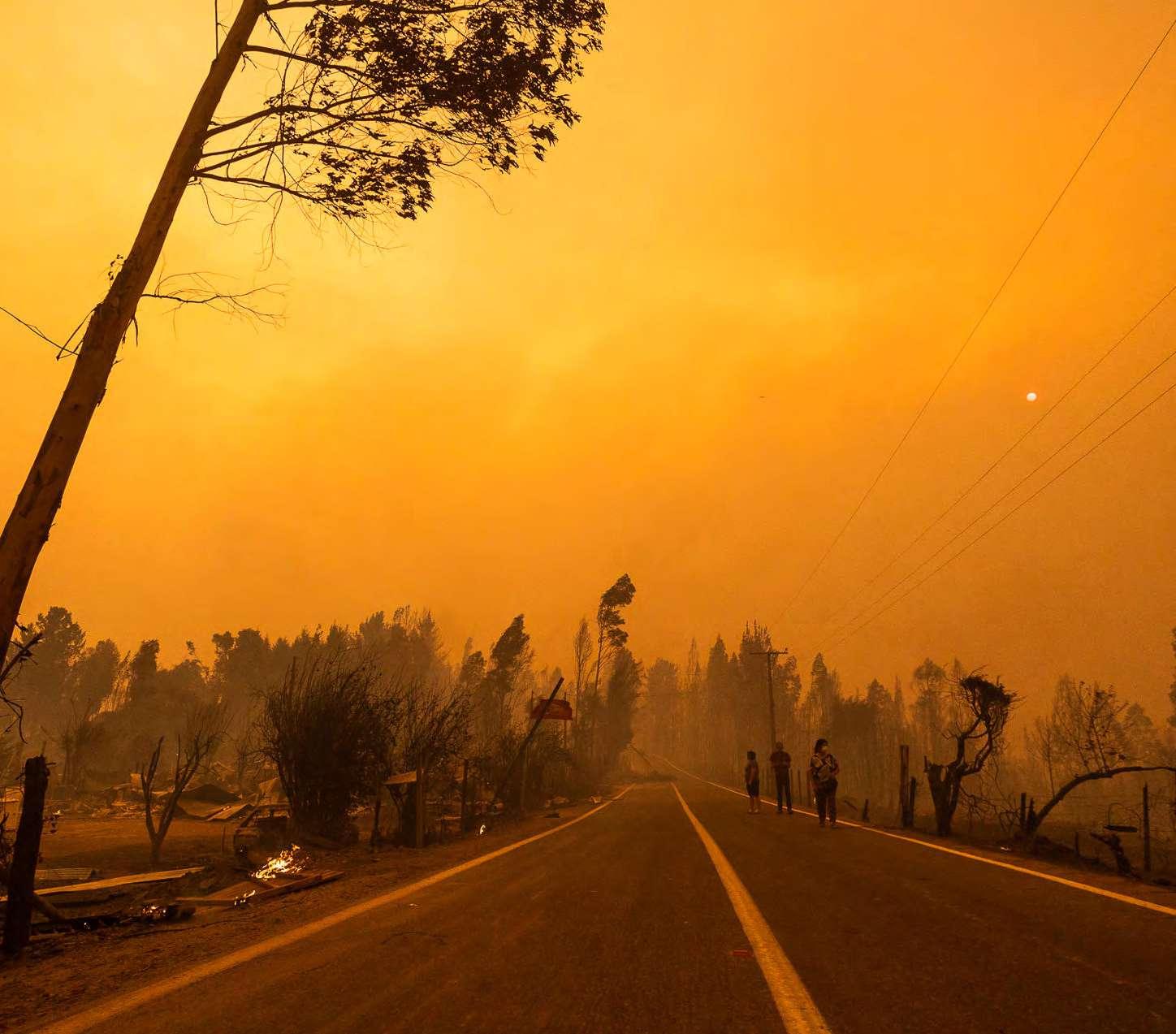 Fotografía de un sector incendiado cerca a la ciudad de Santa Juana (Chile). Las regiones de Biobío, Ñuble y La Araucanía son las más afectadas por flagelos que ya han destruido más de 45.000 hectáreas y un centenar de viviendas y han provocado el desalojo de decenas de municipios. Los incendios coinciden con una larga sequía que ya dura más de trece años y con una ola de calor inédita en el sur, con temperaturas que pueden llegar en las próximas horas hasta los 40 grados celsius en zonas del sur. (EFE/ Pablo Hidalgo)