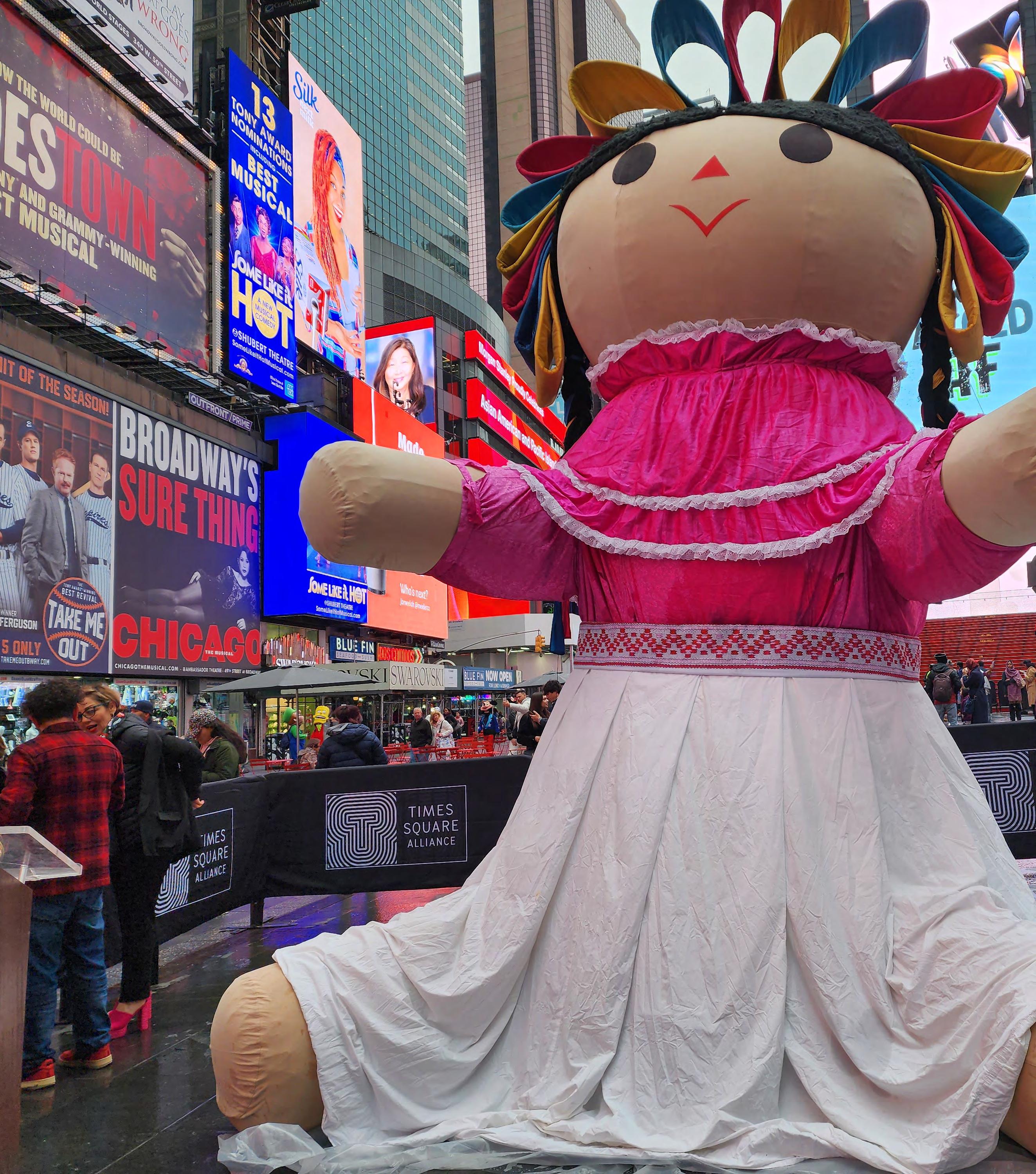 El barrio turístico de Times Square en Nueva York recibió este jueves a ‘Lelé’ una gigantesca muñeca de la antigua cultura Otomi, y un ícono de México, que durante tres días promoverá su natal estado de Querétaro como destino turístico. EFE