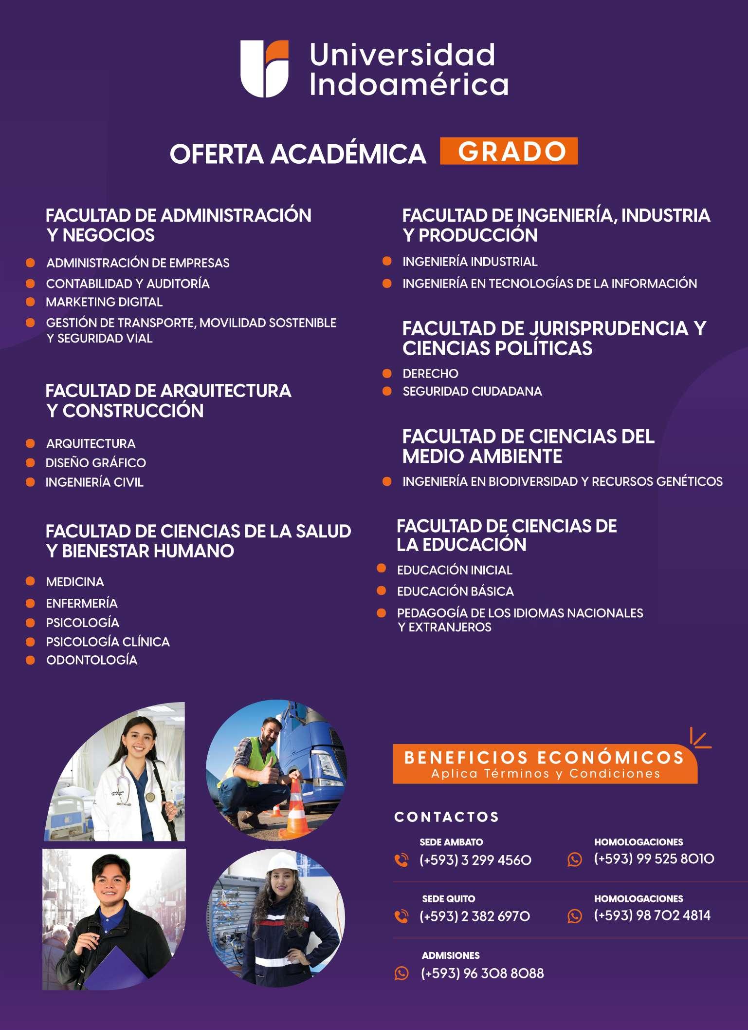 LUNES 07 DE AGOSTO DE 2023 CIRCULACIÓN GRATUITA Tungurahua ALIMENTOS 8 Periodos Académicos INGENIERO/A EN ALIMENTOS BIOTECNOLOGÍA 8 Periodos Académicos INGENIERO/A BIOTECNÓLOGO/A AGRONOMÍA 8 Periodos Académicos INGENIERO/A AGRÓNOMO/A MEDICINA VETERINARIA 9 Periodos Académicos MÉDICO/A VETERINARIO/A ADMINISTRACIÓN DE EMPRESAS 8 Periodos Académicos LICENCIADO/A ADMINISTRACIÓN DE EMPRESAS MERCADOTECNIA 8 Periodos Académicos LICENCIADO/A EN MERCADOTECNIA CONTABILIDAD Y AUDITORÍA 8 Periodos Académicos LICENCIADO/A EN CONTABILIDAD Y AUDITORÍA ECONOMÍA 8 Periodos Académicos ECONOMISTA ENFERMERÍA 9 Periodos Académicos LICENCIADO/A EN ENFERMERÍA FISIOTERAPIA 8 Periodos Académicos LICENCIADO/A EN FISIOTERAPIA LABORATORIO CLÍNICO 8 Periodos Académicos LICENCIADO/A EN LABORATORIO CLÍNICO MEDICINA 12 Periodos Académicos MÉDICO/A GENERAL PSICOLOGÍA CLÍNICA 8 Periodos Académicos LICENCIADO EN PSICOLOGÍA CLÍNICA ARQUITECTURA 9 Periodos Académicos ARQUITECTO/A DISEÑO GRÁFICO 8 Periodos Académicos LICENCIADO/A EN DISEÑO GRÁFICO DISEÑO INDUSTRIAL 9 Periodos Académicos INGENIERO/A EN DISEÑO INDUSTRIAL DISEÑO TEXTIL E INDUMENTARIA 8 Periodos Académicos LICENCIADO/A EN DISEÑO TEXTIL E INDUMENTARIA