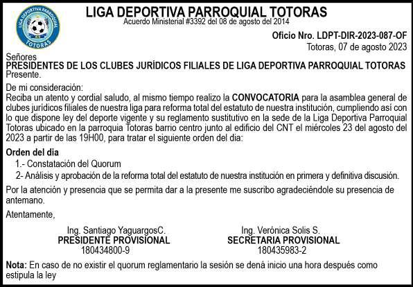 Ambato, 07 de agosto 2023 ==