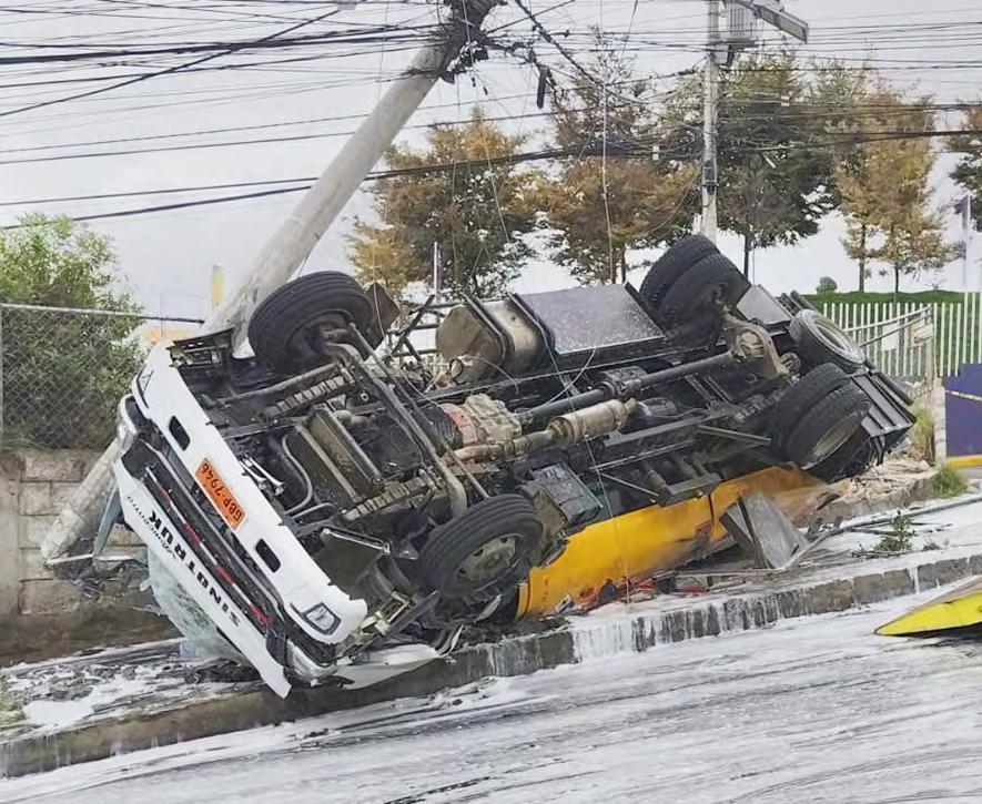 Al ECU 911 se reportó la emergencia de un tanquero que perdió pista y se volcó. Agentes civiles de tránsito y personal del Cuerpo de Bomberos acudieron al sitio.
