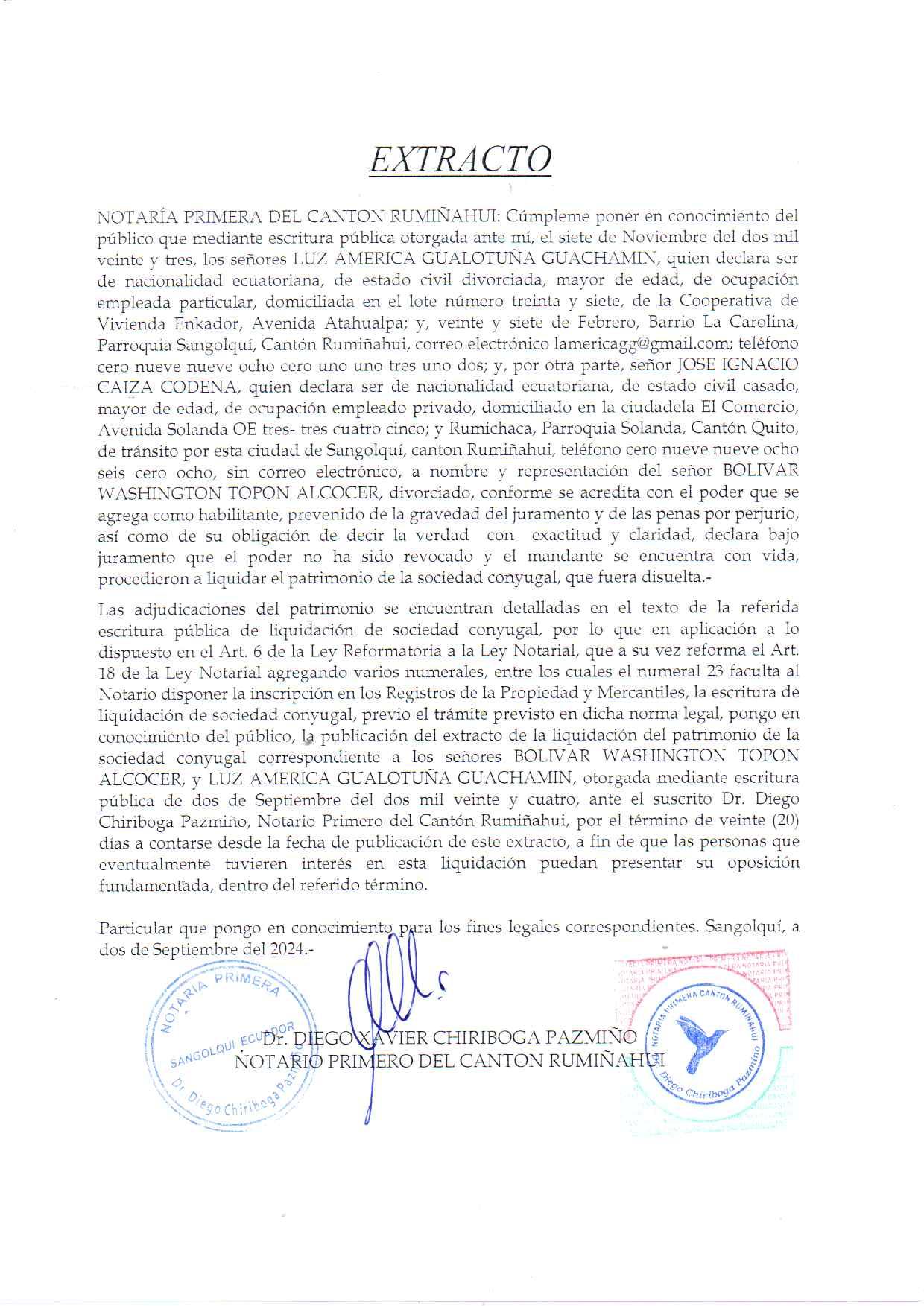 DEMANDADO : MIGUEL ANGEL GUANGASIG BOSQUE