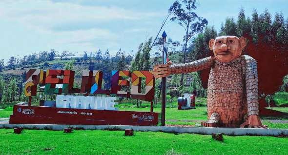El Complejo Turístico La Moya también acoge a uno de los ‘Gigantes de madera’. Junto a un colorido letrero de Pelileo Grande los turistas disfrutan de este espacio que cuenta con una amplia oferta de diversión familiar.