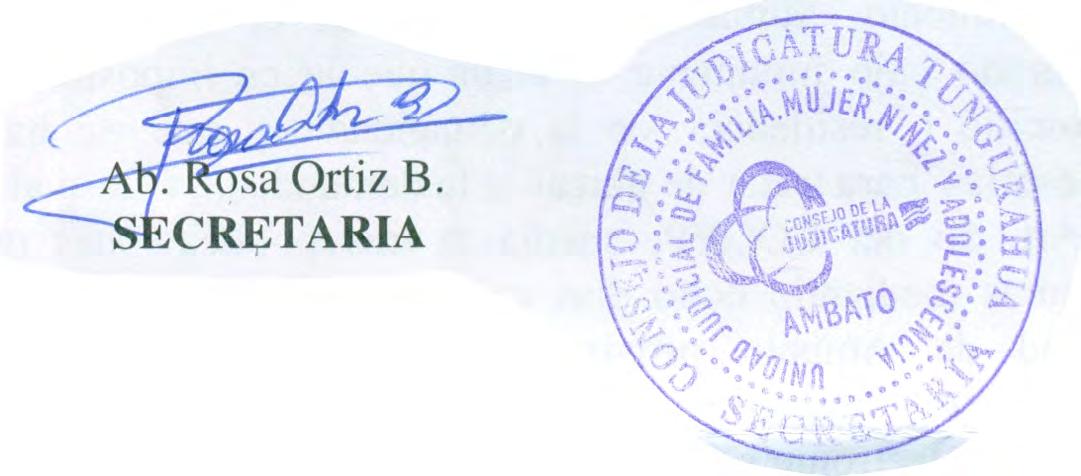 R. del E. UNIDAD JUDICIAL DE LA FAMILIA, MUJER, NIÑEZ Y ADOLESCENCIA CON SEDE EN AMBATO EXTRACTO