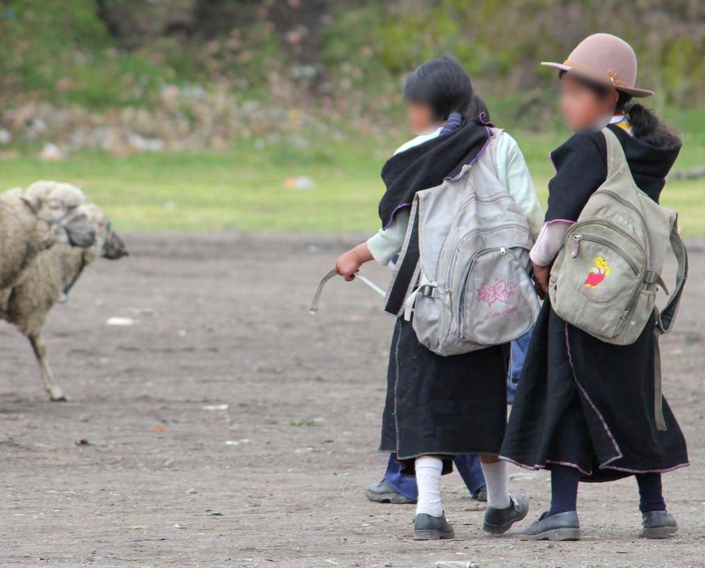 El sol pega directo sobre su rostro, iluminando unas profundas y largas ojeras. Su mirada se fija en el piso, mientras sus piernas marcan el ‘tempo’ de un arrullo. En sus manos, la joven carga un pequeño bulto envuelto en una cobija azul. Sentada en el parque central de San Pablo del Lago, en Otavalo, espera un bus para volver a Camuendo, su comunidad. Sofía tiene 16 años y hoy tuvo que faltar al colegio.