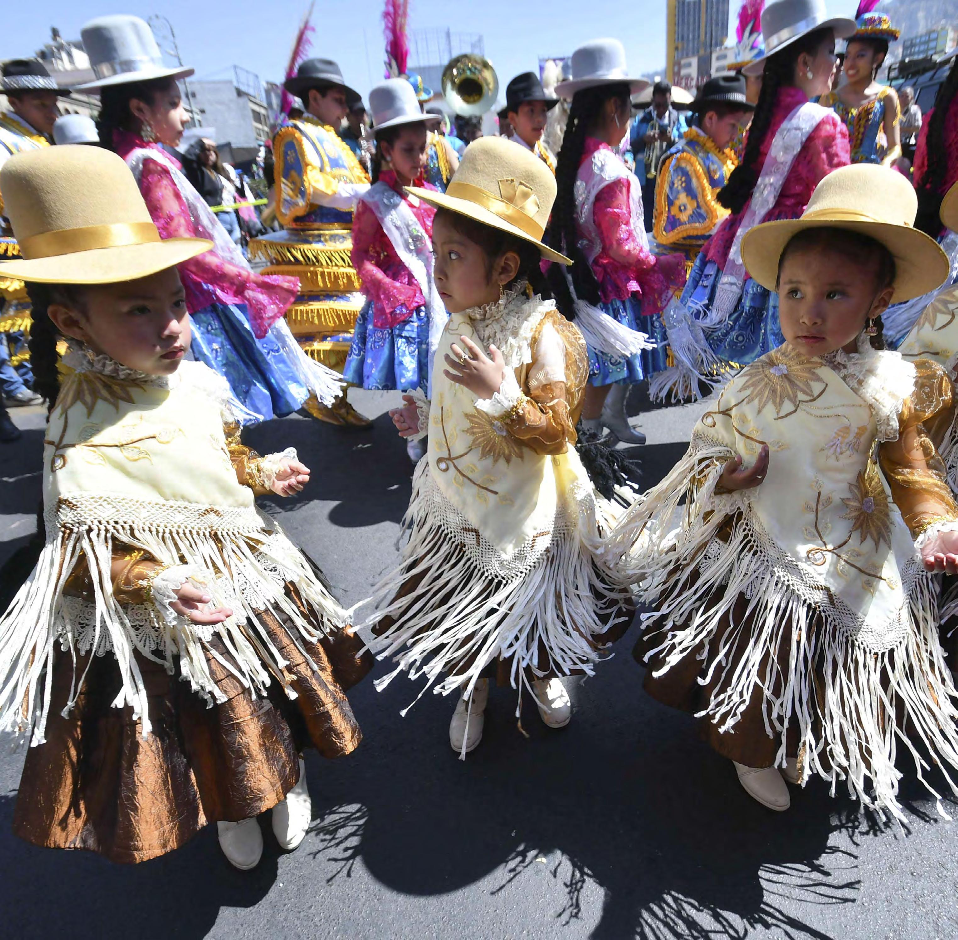 Decenas de niños reivindicaron este 10 de septiembre de 2023 el origen boliviano de la danza de la morenada con sus mejores trajes y pasos en una “minientrada” o desfile folclórico que atravesó el centro de La Paz. EFE