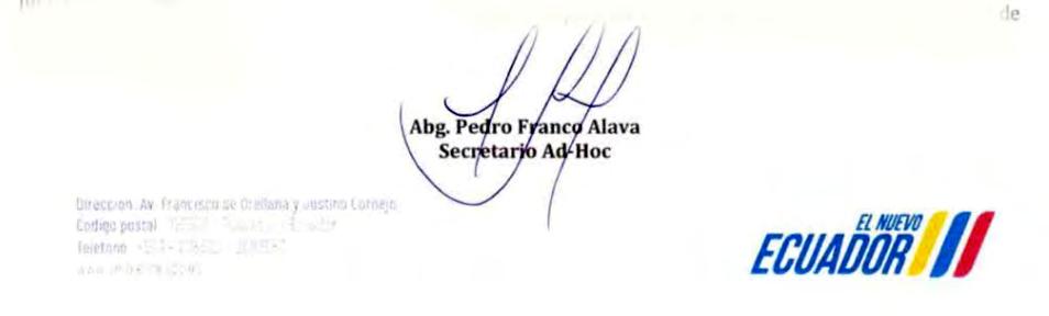 Secretario: AB. FREDDY MOPOSITA RAMÓN