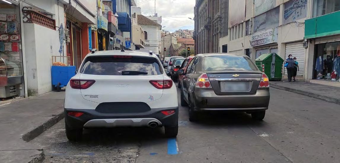 El centro de Ambato es donde los conductores incurren de manera frecuente en la infracción de parquearse donde no es permitido, generando tráfico en algunas de las estrechas calles de esta parte de la ciudad.