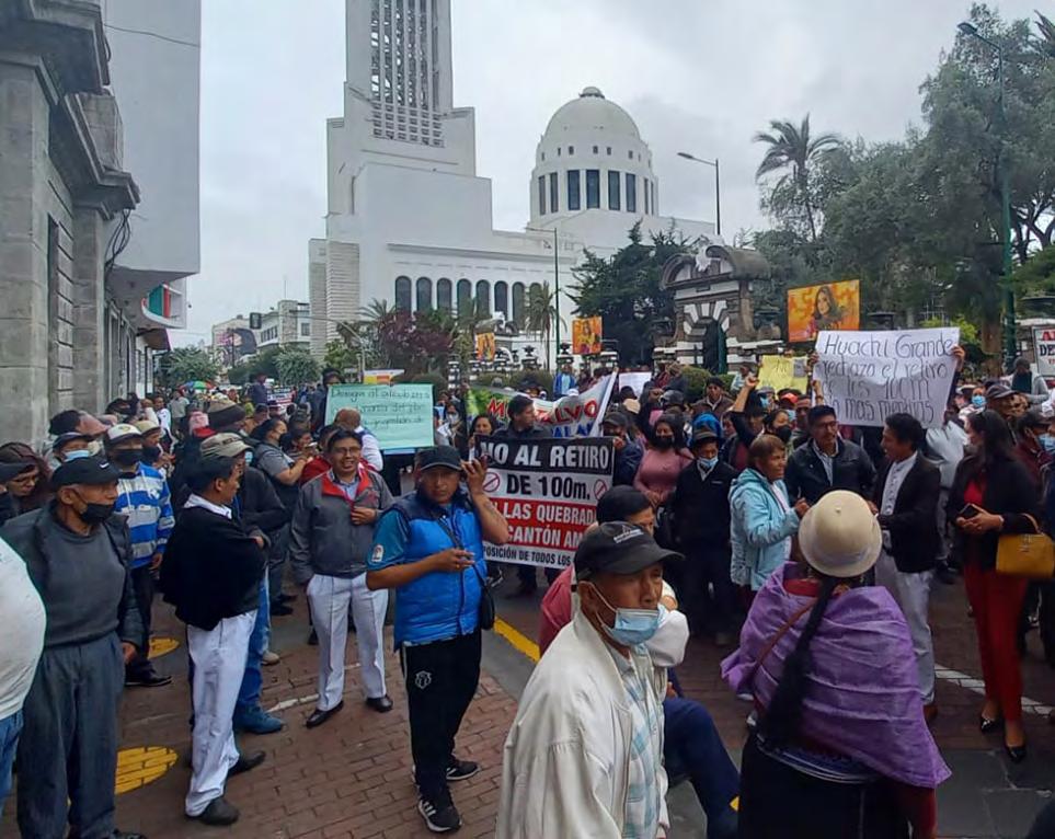 Pobladores de ocho parroquias de Ambato se sienten molestos y preocupados por el Plan de Uso y Gestión de Suelo, ya que en el artículo 189 establece la prohibición para construir a menos de 100 metros de las riberas de río y quebradas del cantón. Página 3