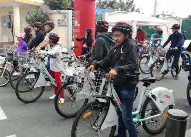 rumbaterapia para que los participantes puedan calentar todos los músculos y articula ciones antes de iniciar con el paseo en bicicleta.