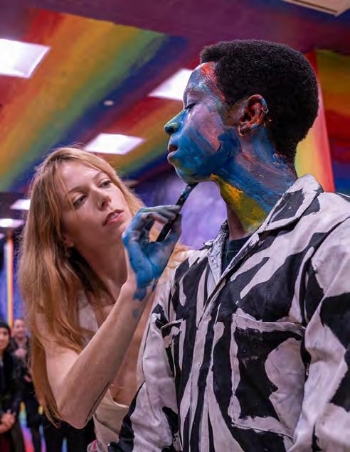 °“Tomé todo este enorme espacio y lo convertí en un mundo por el que la gente puede caminar entre dife rentes escenas pintadas y conectadas” y “convertirse en la propia obra”, explica a EFE la artista, parte de cuyo trabajo es hacer cuadros en tres dimensiones en los que suelen incluir personas pintadas como si surgieran de un lienzo.