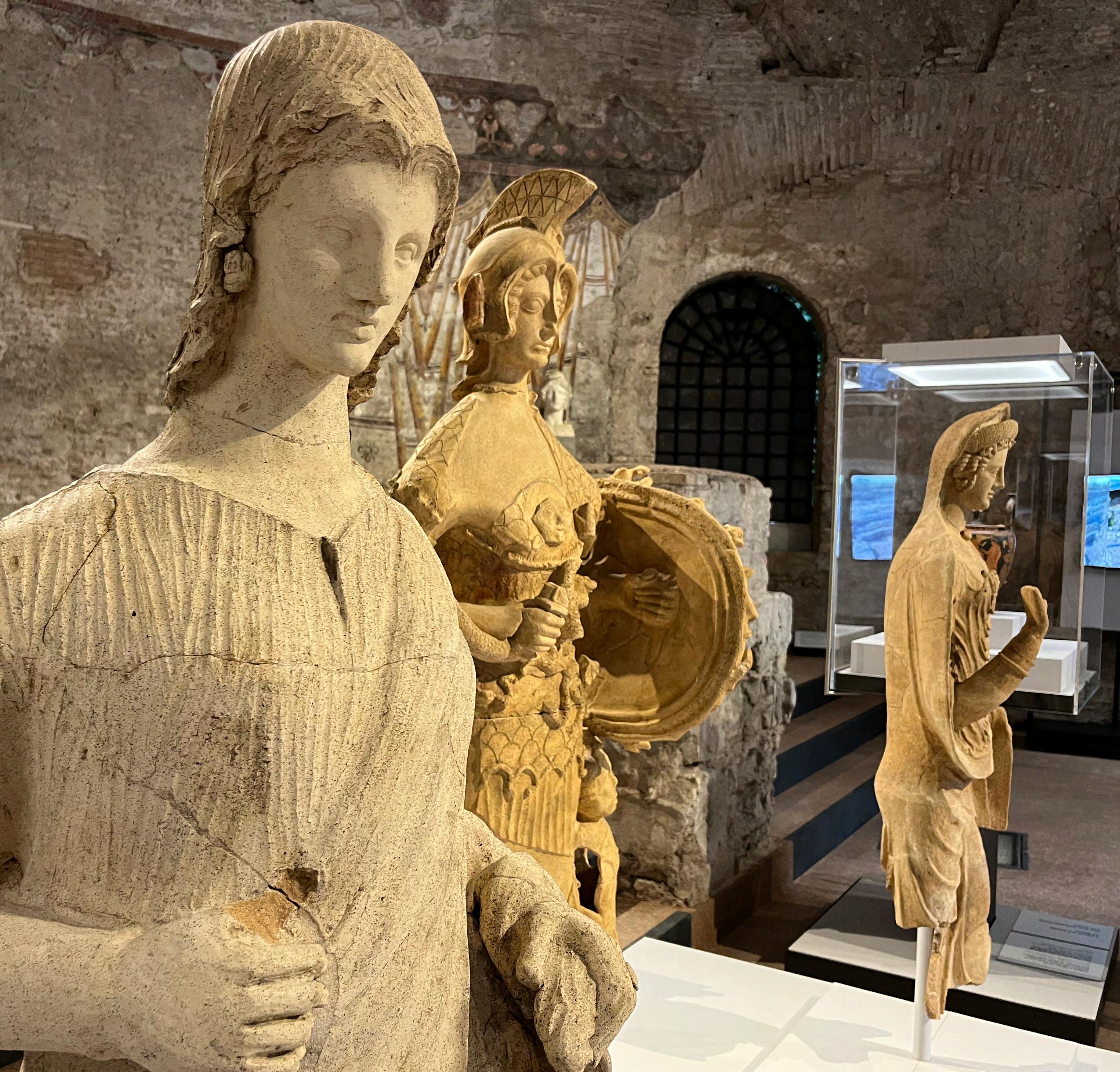 Estatuas expuestas en la muestra ‘El viaje de Eneas: de Troya a Roma’, este 14 de diciembre de 2022 en Roma (Italia). Eneas, el mítico príncipe troyano en el que los antiguos romanos veían sus orígenes mitológicos, gobierna en los Foros imperiales, con una muestra que relata su fuga de la destrucción y el periplo con el que unió el Mediterráneo. EFE