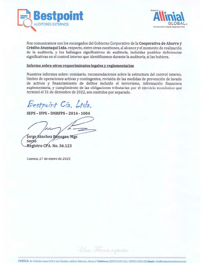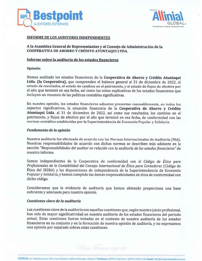 3. Conocimiento del informe de auditoría de TAX FINANCIAL LEADERS DEL ECUADOR TFL S.A., Auditores Externos del Fideicomiso HIT, correspondiente al ejercicio fiscal 2022.