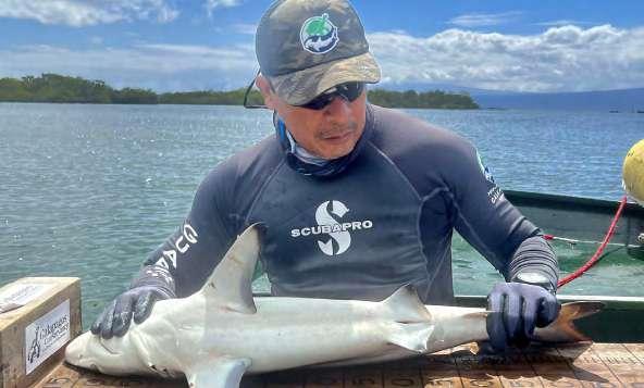 Estas actividades son parte del Programa de Monitoreo de Tiburones en la Reserva Marina de Galápagos, ejecutadas por la Dirección del Parque Nacional Galápagos, que implementa un proyecto para identificar y caracterizar zonas de reproducción y crianza de tiburón martillo y tiburón punta negra (Carcharhinus limbatus).