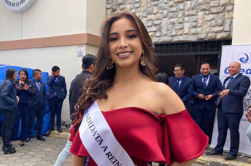 Karen representa a la Cooperativa de Ahorro y Crédito Ecuafuturo en esta nueva edición de la Fiesta de la Fruta y de las Flores (FFF).