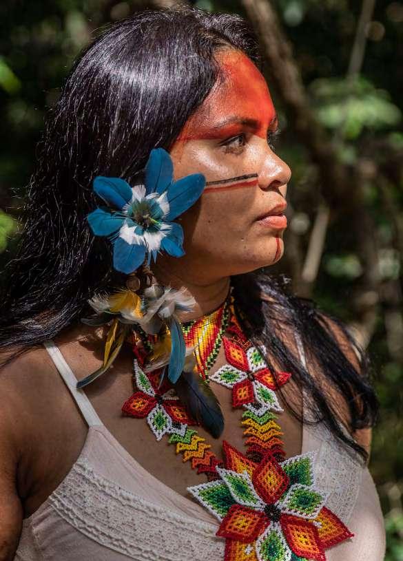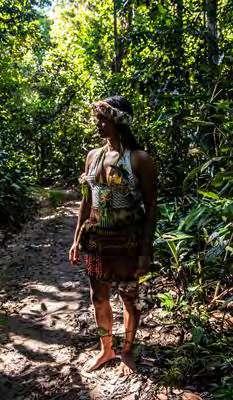 La indígena de la etnia Pataxó, Inaiá Pataxó, muestra los encantos de su entorno.