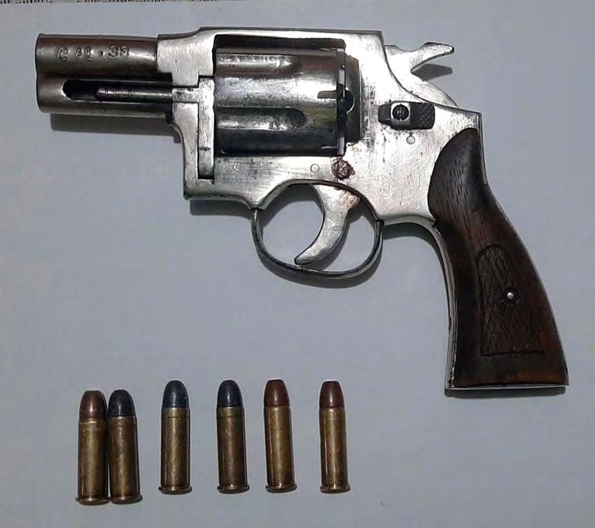encontrada en el terreno baldío donde este la tiró. Dentro del tambor se hallaron seis cartuchos, calibre 38 que aún no habían sido disparados. Policías de la Unidad de Criminalística fue llamado y se encargaron de fijar y levantar la evidencia.