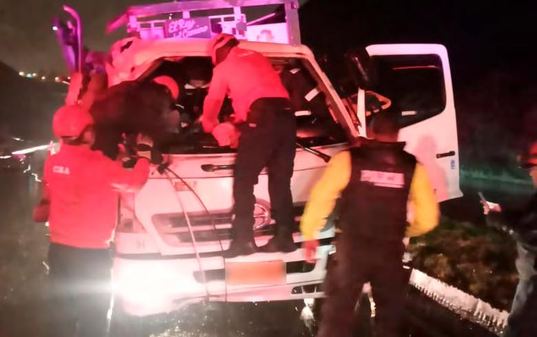 Se trataba de un camión HINO blanco con placas de Tungurahua. El conduc tor habría perdido pista y se