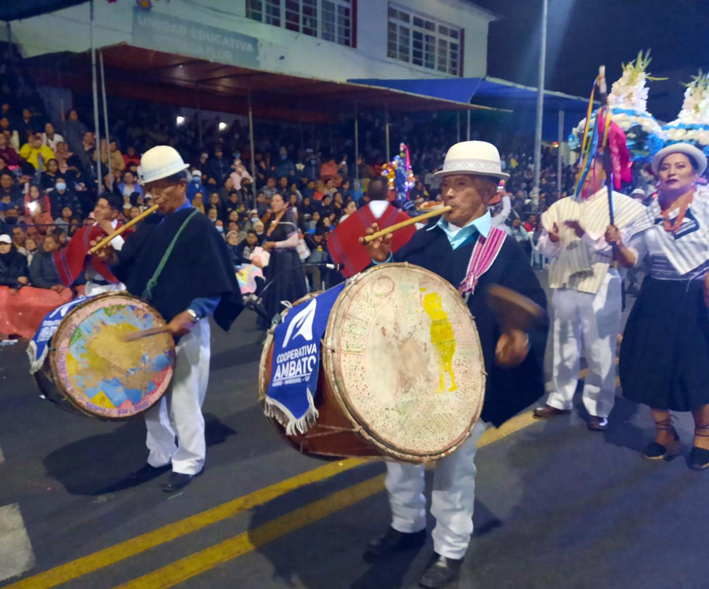 Representantes de la Cooperativa Ambato al son de ancestrales sonidos desfilaron durante la ronda.