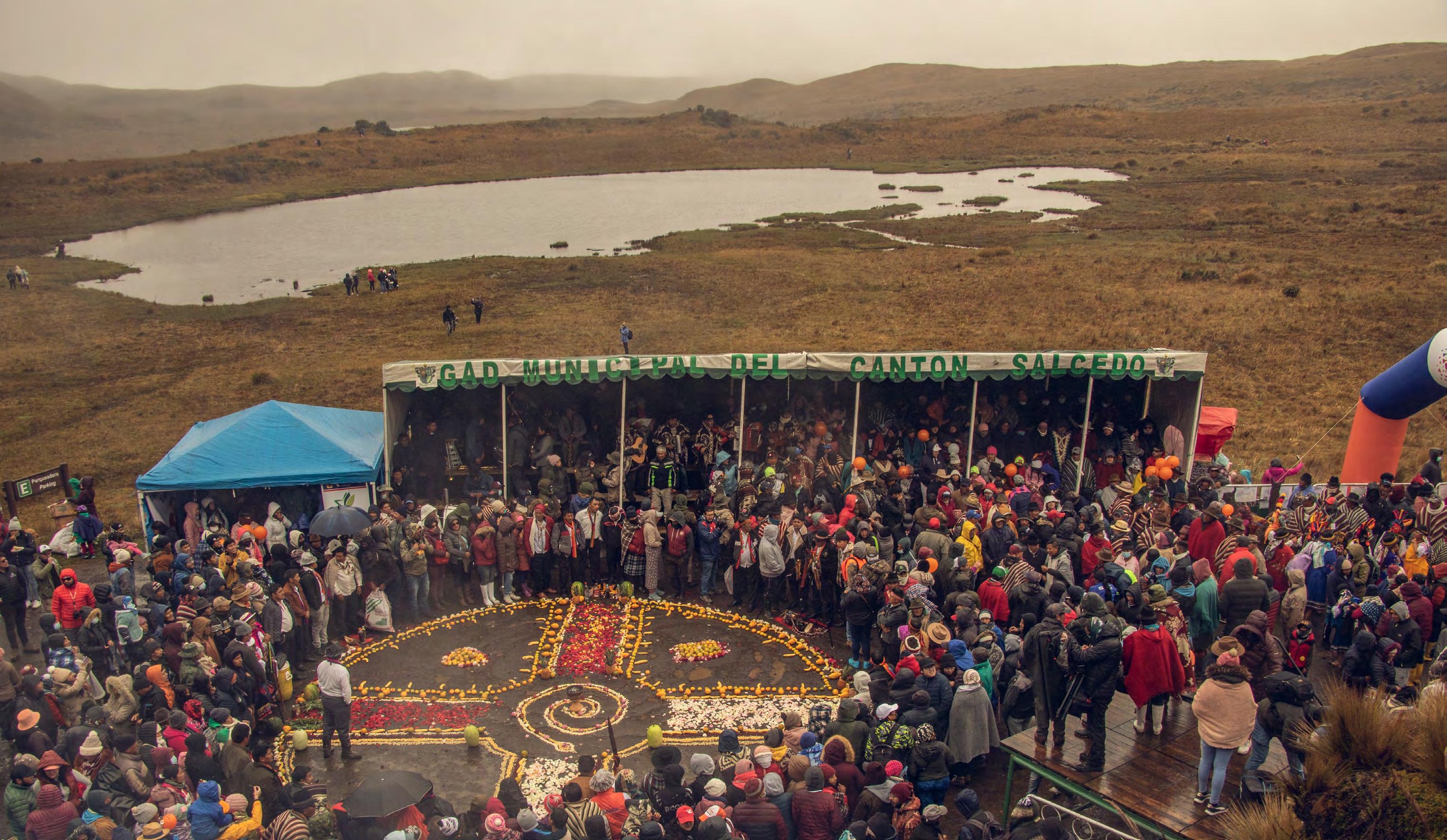 Junto a la Laguna de Anteojos, desde las siete de la mañana, se comenzaron a instalar los puestos de comida, una especie de tribuna y una tarima que serviría para ver desfilar a todos los políticos de Cotopaxi con sus respectivos discursos.