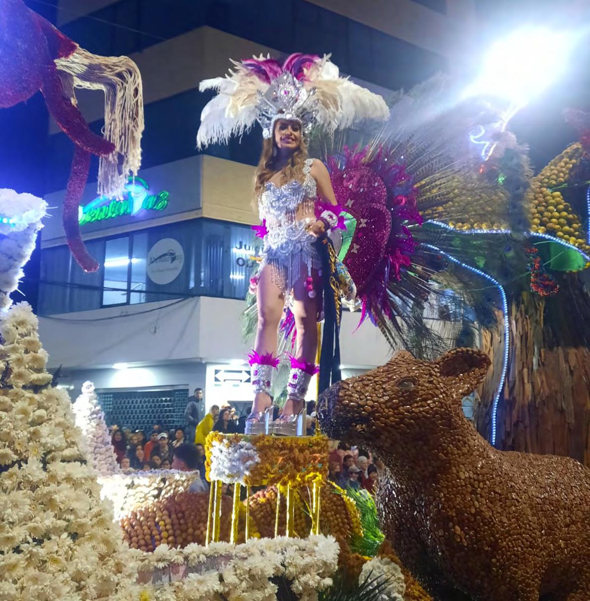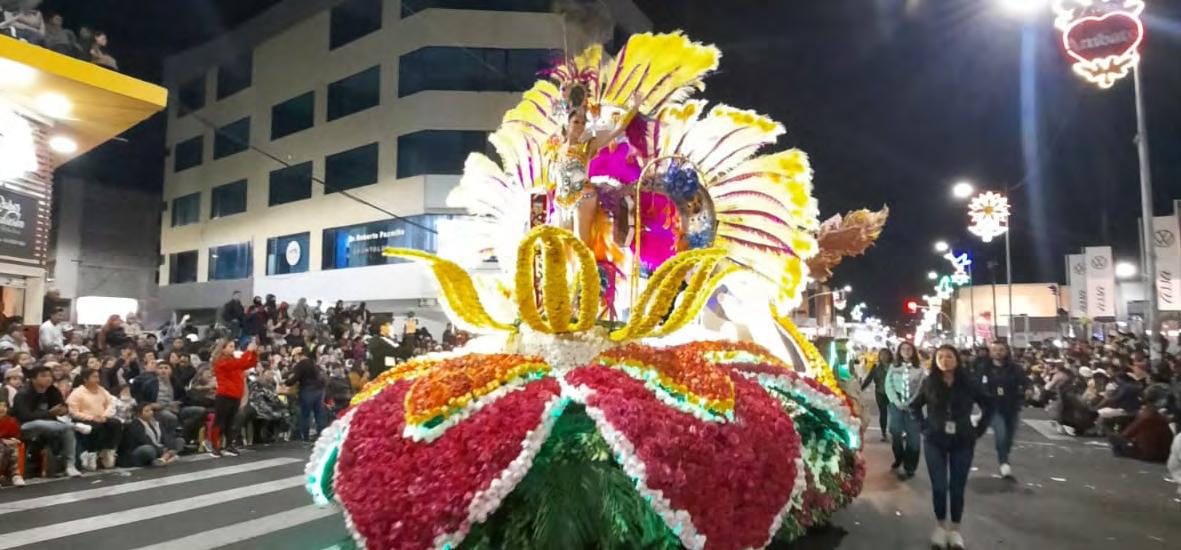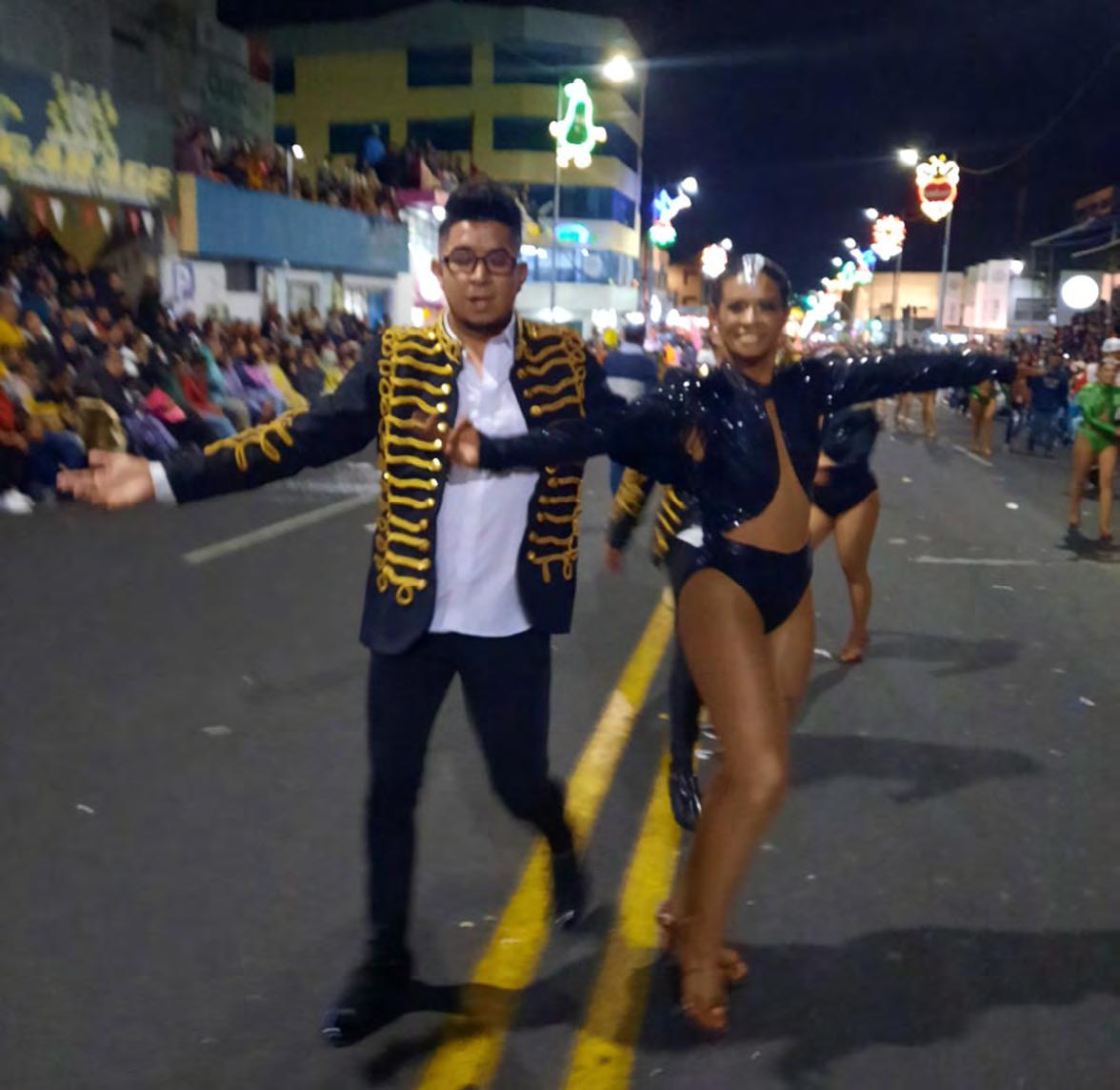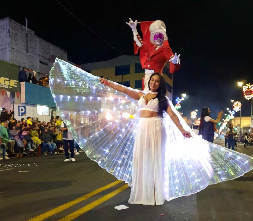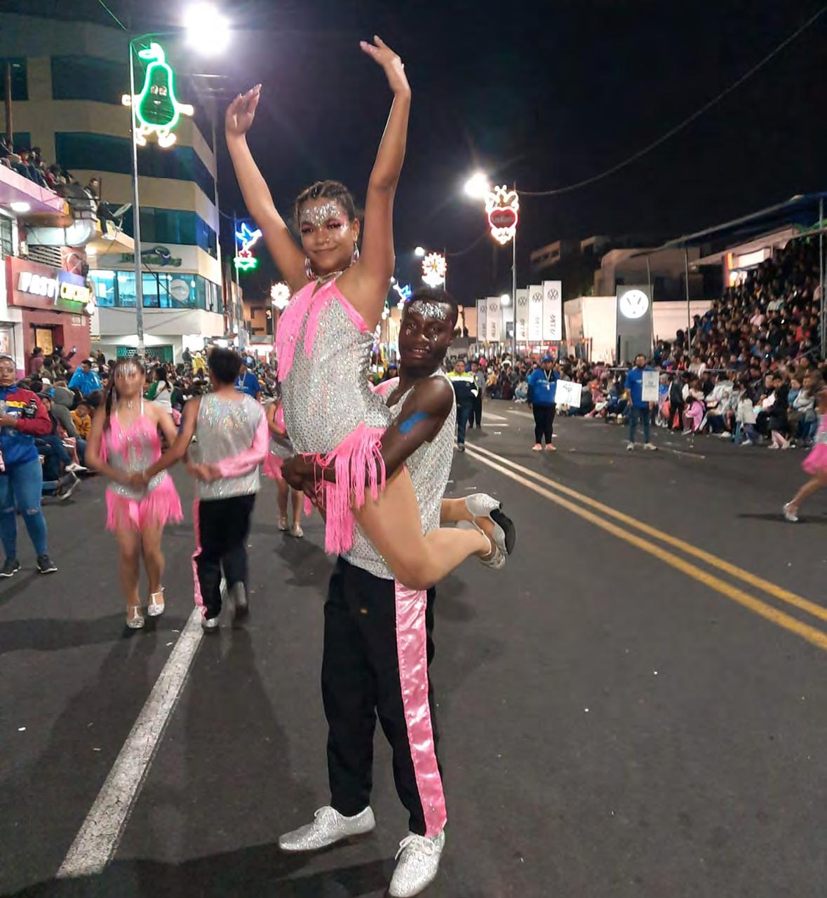 ¡Viva Ambato!, era el grito que no se hizo esperar mientras las escuelas de danza y baile se hacían presente durante la Ronda Nocturnal, uno de los eventos patrimoniales de la Fiesta de la Fruta y de las Flores. Diana Palacios, Reina de Ambato, encabezó este colorido desfile. Páginas 2, 3 y 4
