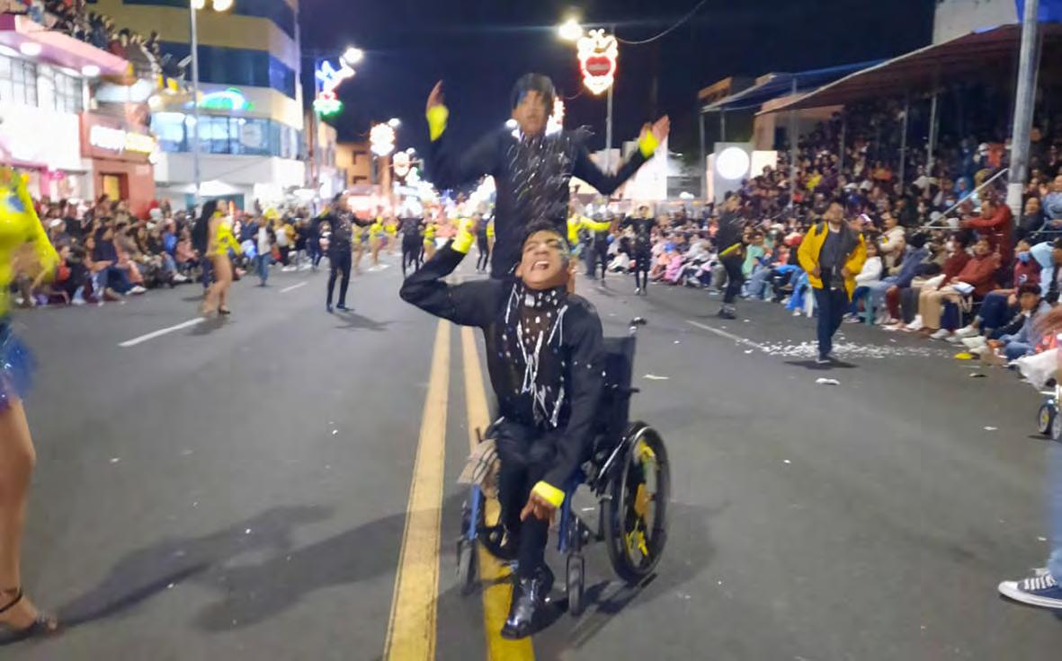 Edwin David de 21 años, del Ballet Folclórico Yaku Raymi, baila junto a sus compañeros a pesar de estar en una silla de ruedas.