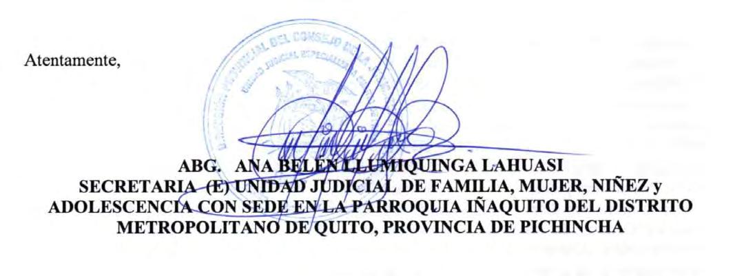 4) Conforme lo dispuesto en el articulo 107 numeral 3 del reglamento antes mencionado, anúnciese la solicitud de autorización de Uso y aprovechamiento de agua por la prensa mediante tres publicaciones consecutivas, las cuales se realizarán en un periódico de circulación local, de no existir se lo realizará en un periódico de amplia circulación nacional. El interesado brindará las facilidades para el cumplimiento de la diligencia, por lo que, deberá acercarse a esta oficina a retirar el extracto de publicación. 5) Se tendrá en cuenta, de conformidad al articulo 172 del Código Orgánico Administrativo, los correos electrónicos: miguel2020ojeda@gmail.com que señala para recibir futuras notificaciones, para que le represente dentro de la presente causa, profesional del derecho quien declara no encontrarse inmerso en las prohibiciones que establece la ley para la práctica del libre ejercicio en la abogacía. 6) Designar dentro del presente proceso en calidad de secretaria a la Abg. Paola Silva Vera, servidora pública de esta institución, quien hallándose presente acepta el cargo conferido, jura su fiel y legal desempeño, para lo cual firma. NOTIFIQUESE Y CUMPLASE. f) Mgs. Gavino Vargas Salazar “Director ZonalDirección Zonal 3 Chimborazo - Ministerio del Ambiente y Agua y Transición Ecológica”. Lo que comunico a usted para los fines de ley consiguientes, previniéndoles a los interesados de la obligación que tiene de señalar casillero judicial o correo electrónico para futuras notificaciones.