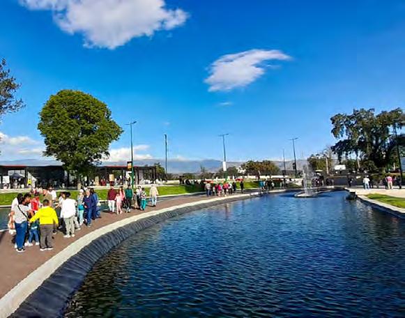 Las tres piletas que se elevan a 12 metros de altura y que van en armonía con la luz y con la música, más los amplios espacios verdes han llamado la atención de los ambateños que han visitado este lugar mostrando su felicidad por contar con un espacio que aporta a positivamente a la estética de la ciudad. (RMC)