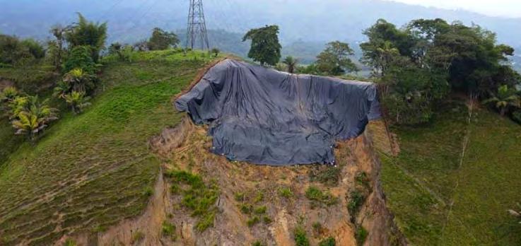 La Corporación Eléctrica del Ecuador (CELEC- EP), informó que realizó trabajos de impermeabilización en la corona del deslizamiento cercano a la estructura 136, de la línea de transmisión Santa Rosa - Santo Domingo.