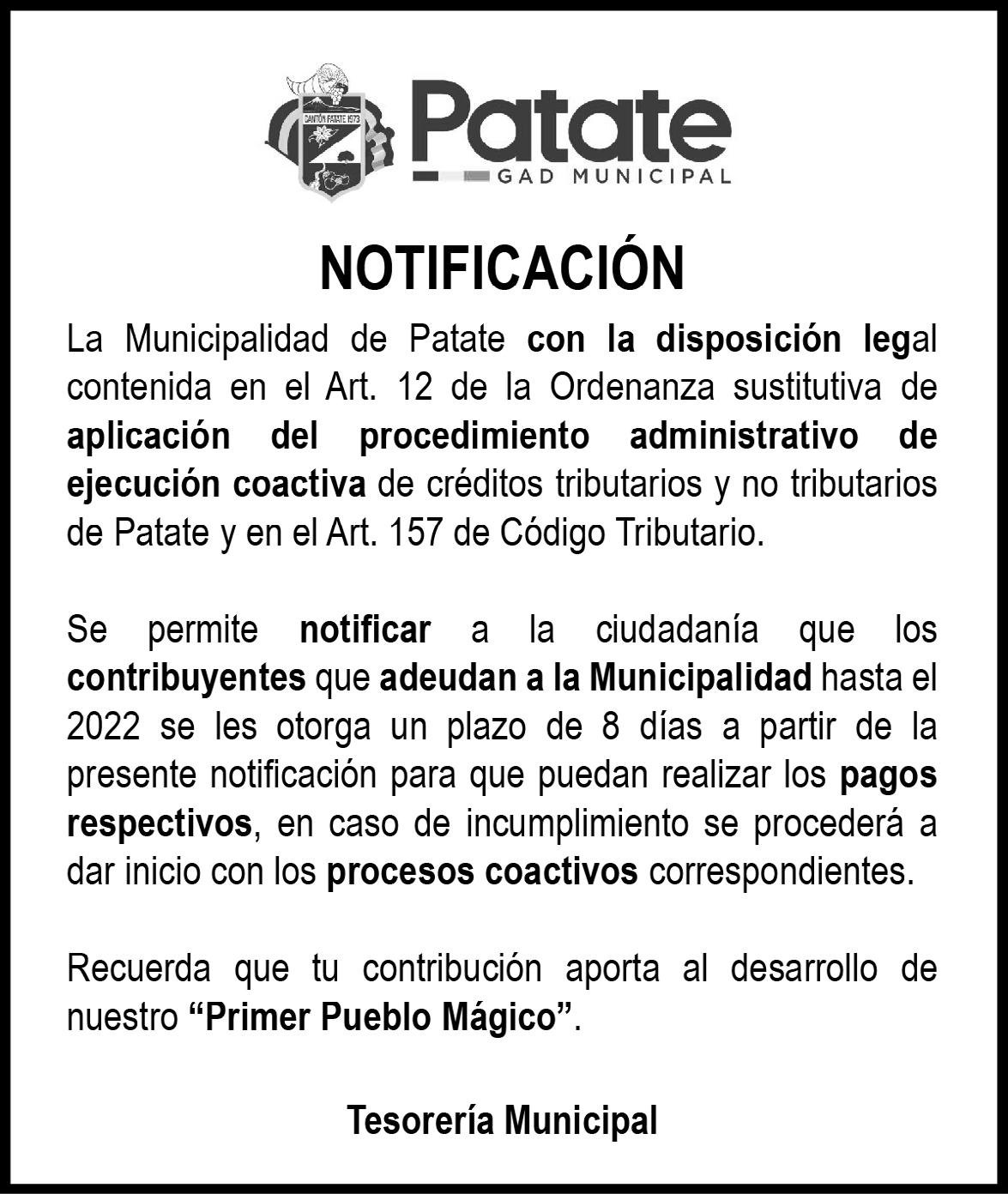 De no hacerlo el Municipio de Ambato, a través de su Dirección de Servicios Públicos, deberá iniciar con un proceso sancionatorio.
