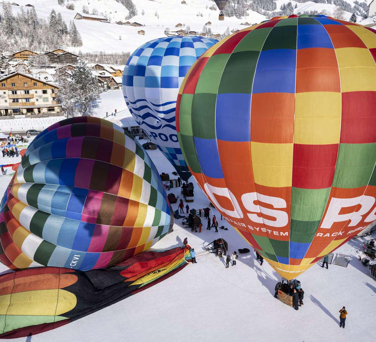 Los globos vuelan durante la Semana Internacional de Globos Aerostáticos en Chateau-d’Oex, Suiza. Alrededor de 100 pintan de color el cielo. Son cinco países los que participan en el evento celebrado en la estación de montaña. (EFE)