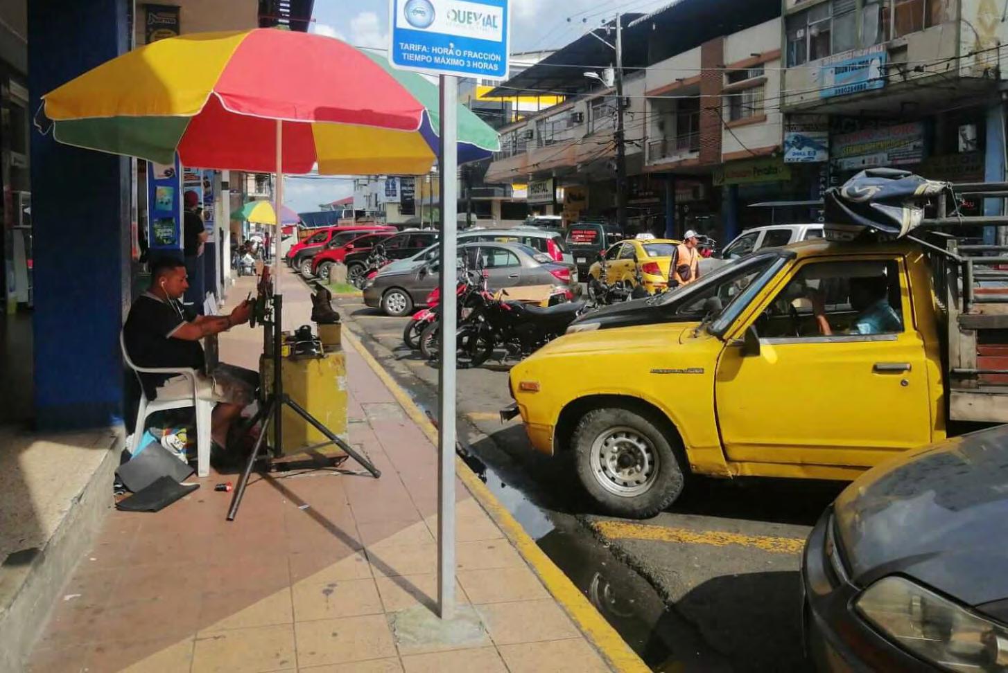 El comerciante, David Carrera, quien tiene un negocio en el centro de la localidad, dijo que diariamente guarda para poder darle su ‘comisión’ al cuidador que está en la calle 7 de Octubre. Aseguró no estar de acuerdo con el pago obligado, puesto que este tema jamás se lo habría socializado con la colectividad.