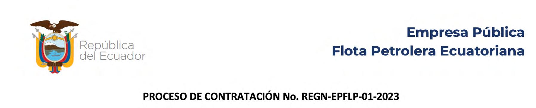 Esmeraldas, 20 de marzo de 2023 Ing. Jorge Basantes PRESIDENTE DE LA COMISIÓN TÉCNICA EP FLOPEC 001-003-2848 ETAPA FECHA HORA Fecha de publicación 22-03-2023 17:00 Fecha de límite de preguntas 24-03-2023 16:30 Fecha de límite de respuestas o aclaraciones 27-03-2023 16:30 Fecha límite de entrega de ofertas 03-04-2023 13:00 Fecha de apertura de ofertas 03-04-2023 14:00 Fecha límite de calificación 04-04-2023 13:00 Fecha estimada de adjudicación 04-04-2023 17:00 ETAPA FECHA HORA Fecha límite para solicitar convalidación de errores 03-04-2023 17:00 Fecha límite para convalidar errores 05-04-2023 15:00 Fecha estimada de adjudicación 05-04-2023 17:00