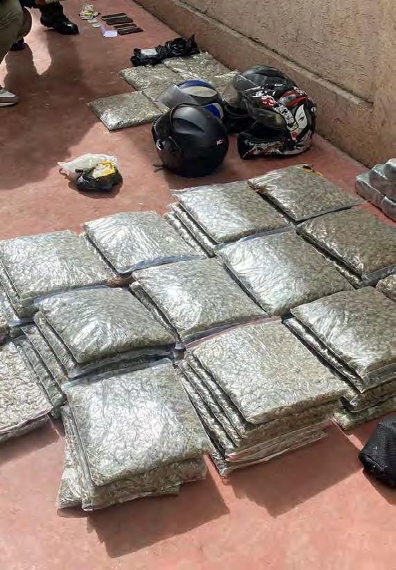 En la vivienda allanada, en delito flagrante, también se encontraron 41.7 kilogramos de marihuana tipo cripy, así como 17 kilogramos de pasta base de cocaína, 0.23 kilogramos de clorhidrato de cocaína y 462 dólares
