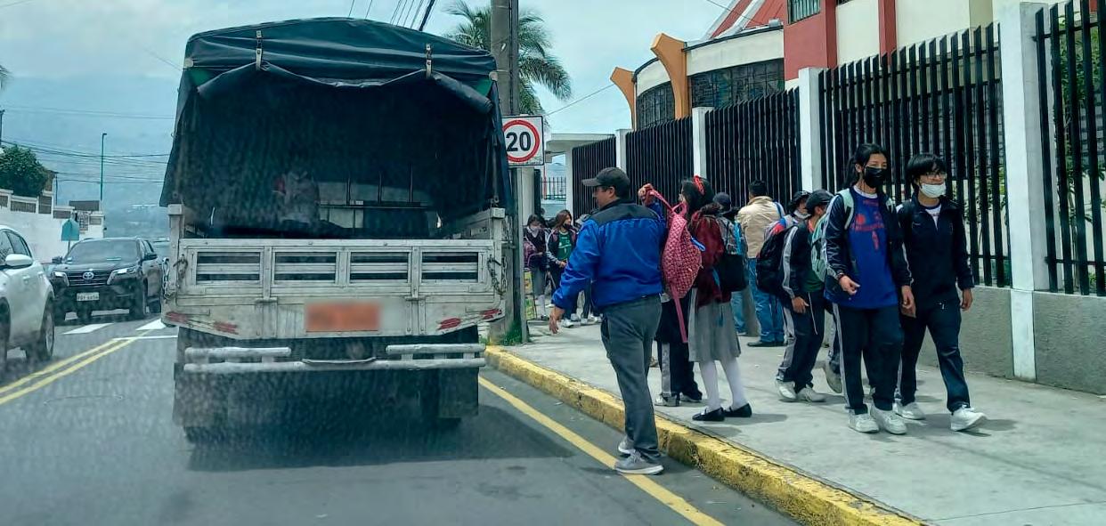 do solos o en compañía de sus progenitores. A pesar de ser peligroso , al recorrer las calles de la ciudad se podía observar a los jóvenes uniformados trepados en el borde de los baldes de las camionetas al fin de la jornada educativa para dirigirse a sus casas.