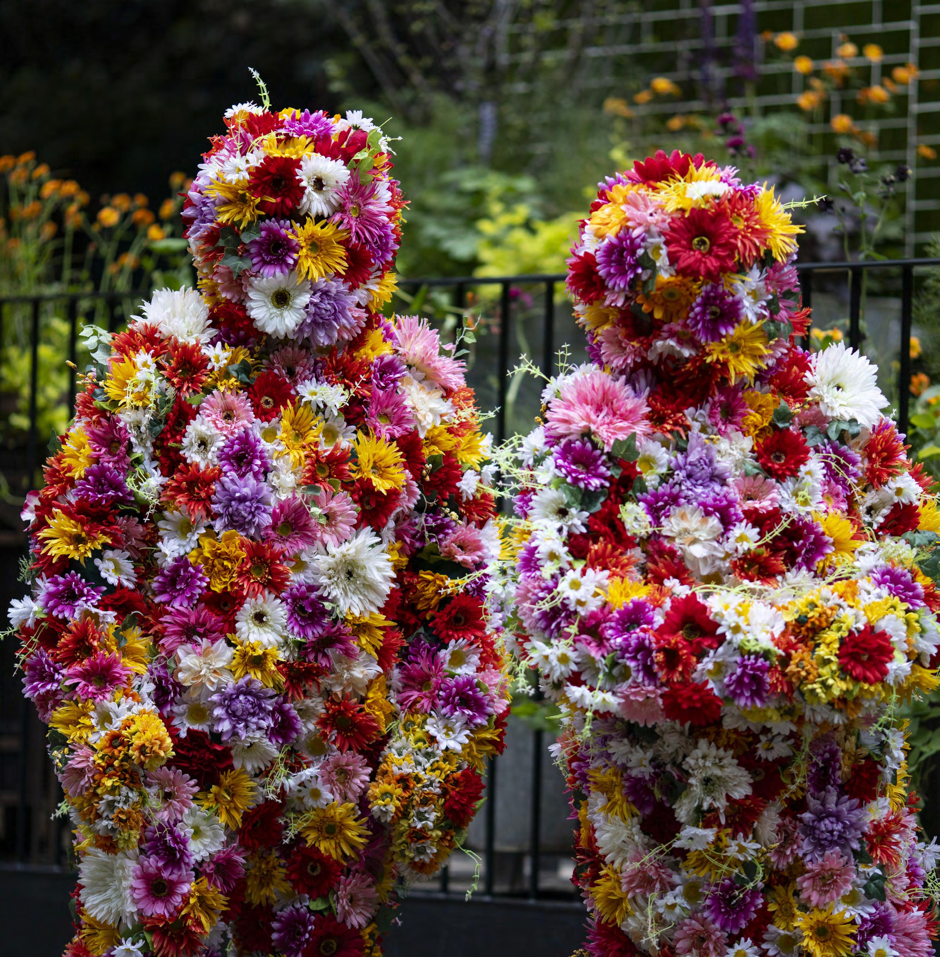 Dos personas vestidas en su totalidad con flores asisten a la Exposición Floral de Chelsea 2023, este 22 de mayo de 2023 en Londres (Reino Unido). EFE