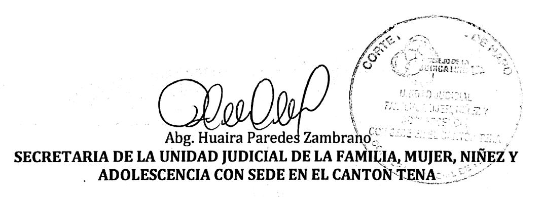 SE HACE SABER. - Que en la UNIDAD JUDICIAL DE LA FAMILIA, MUJER, NIÑEZ Y ADOLESCENCIA CON SEDE EN EL CANTON TENA-PROVINCIA DE NAPO, la señora SANDRA PATRICIA SIERRA RODRÍGUEZ presentó una DEMANDA DE PRIVACIÓN DE PATRIA POTESTAD, cuyo extracto es como sigue: