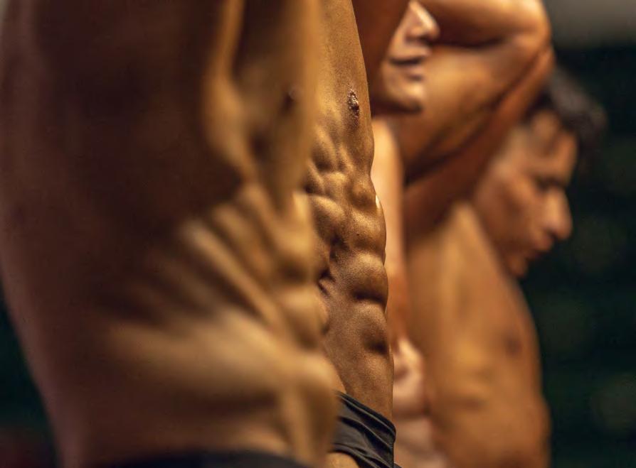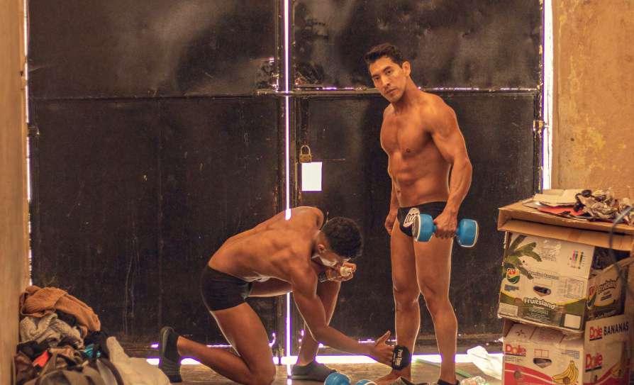 Todos muestran sus músculos al jurado.