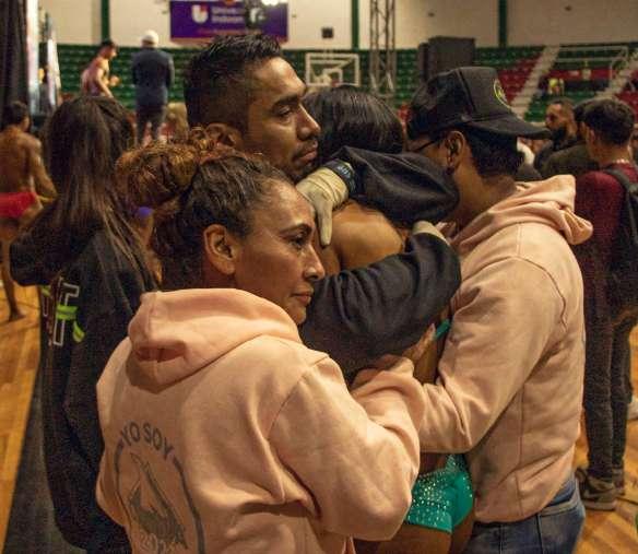 Al terminar su competencia Katty Llerena es abrazada por toda su familia.