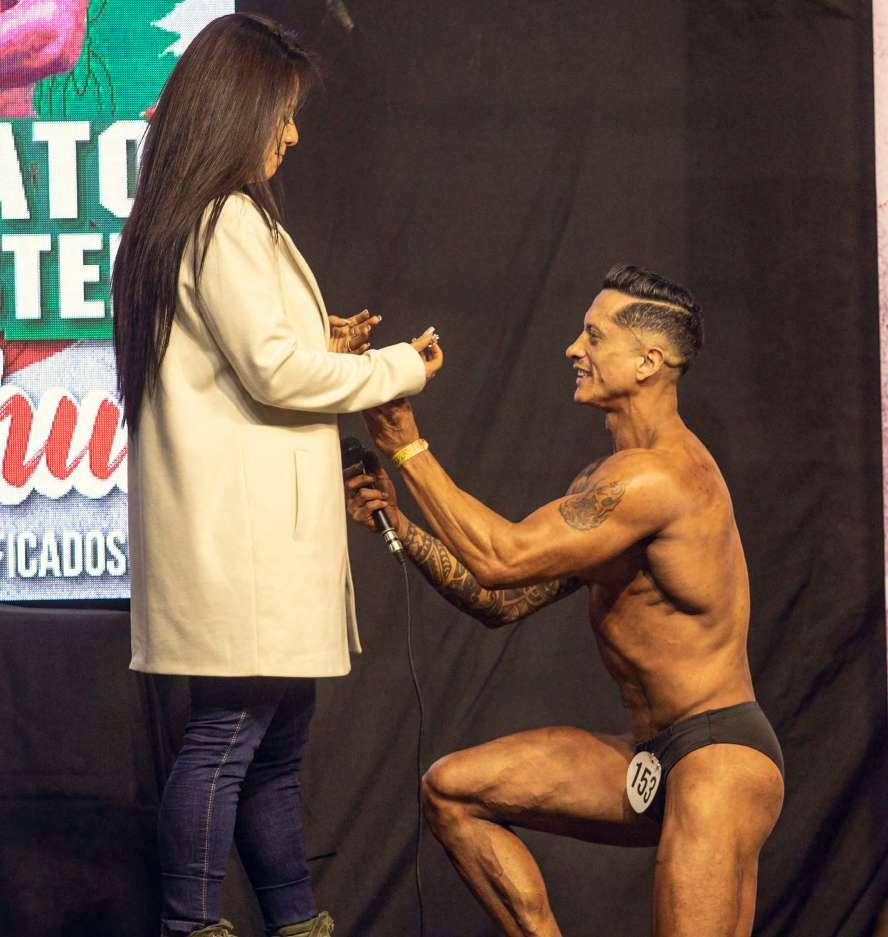 Un deportista aprovechó la ocasión para pedirle matrimonio a su novia en el escenario.