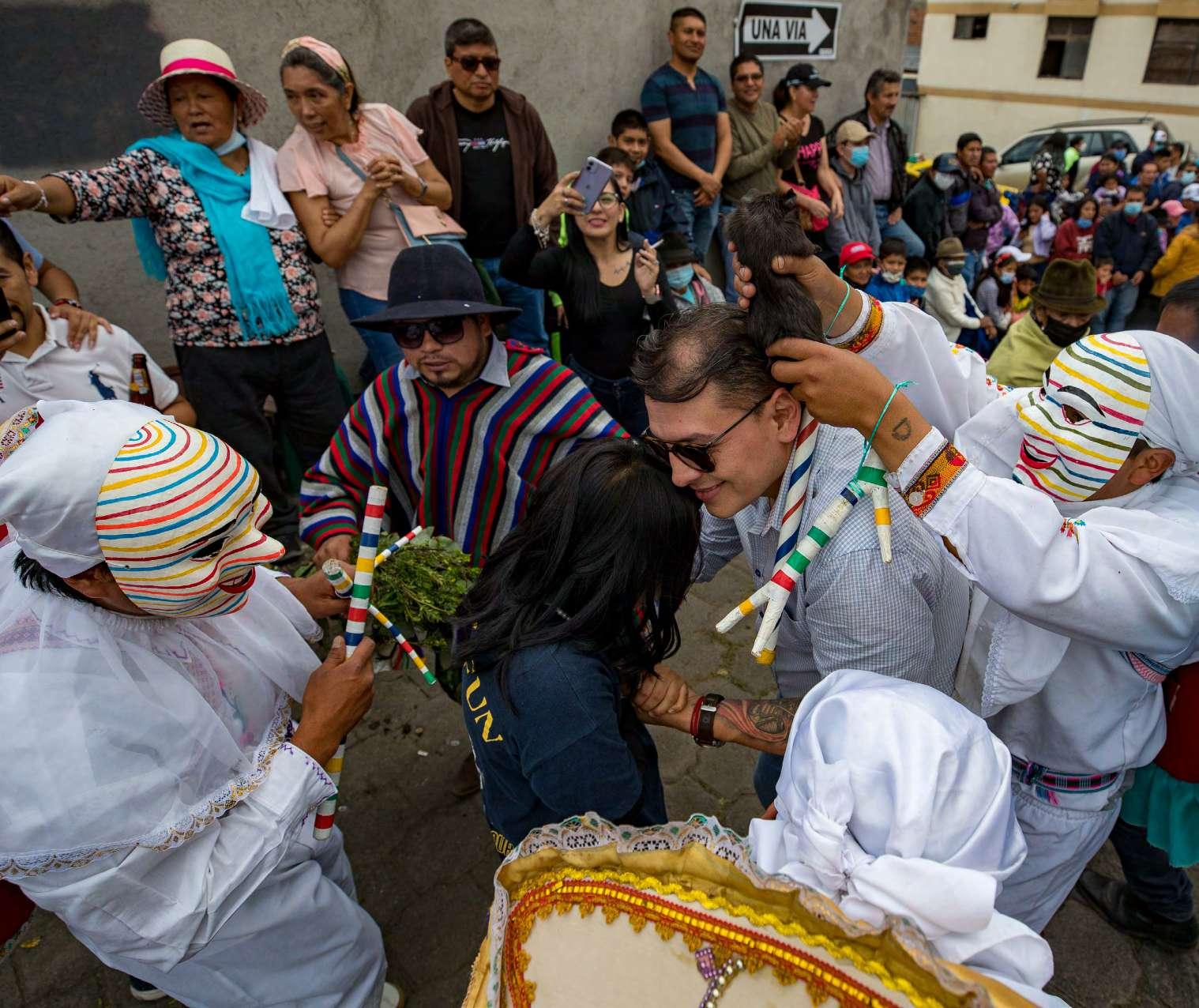 TUNGURAHUADOMINGO 25 DE SEPTIEMBRE DE 2022 Latacunga. - Vista de Huacos, personajes importantes de la Mama Negra, vestidos de blanco y con su rostro pintado del mismo color mientras recorren la ciudad. La Mama Negra es una celebración religiosa única en el mundo, considerada como Patrimonio Inmaterial de Ecuador, reúne rasgos de la cosmovisión andina, del sincretismo cristiano y de la cultura africana, en una amalgama de creencias y festejos propios de la pluriculturalidad del país. EFE La Mama Negra, el rito mercedario que vuelve a los Andes tras la pandemia Da clic para estar siempre informado