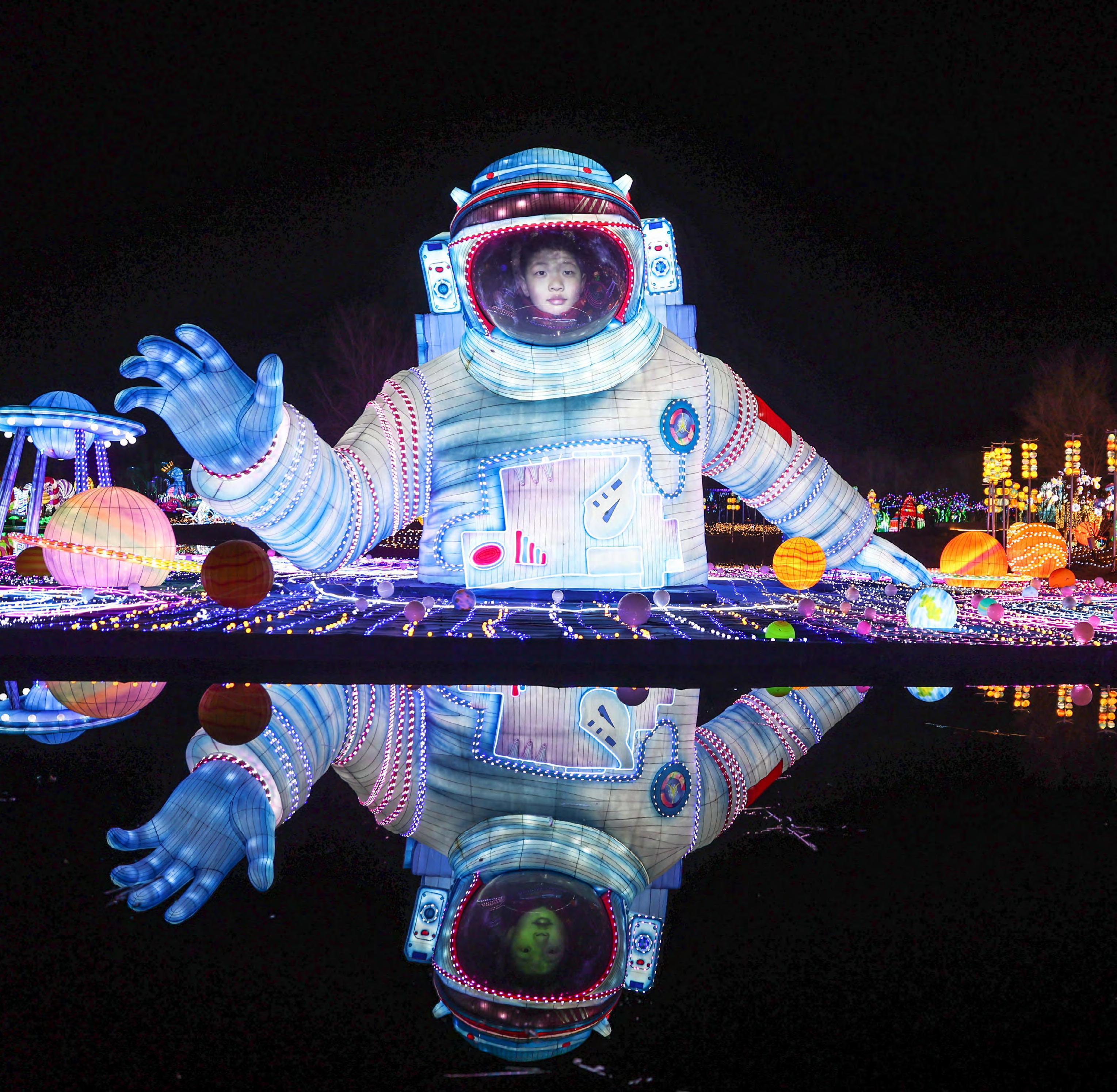 Decoración con forma de astronauta dentro del Festival de los Faroles’, este 23 de febrero de 2024 en Wenyuhe Park, Pekín. Este evento es una importante tradición en China y se celebra en el día 15 tras el inicio del nuevo año lunar, con gente colgando faroles y elaborando dulces típicos de arroz. EFE