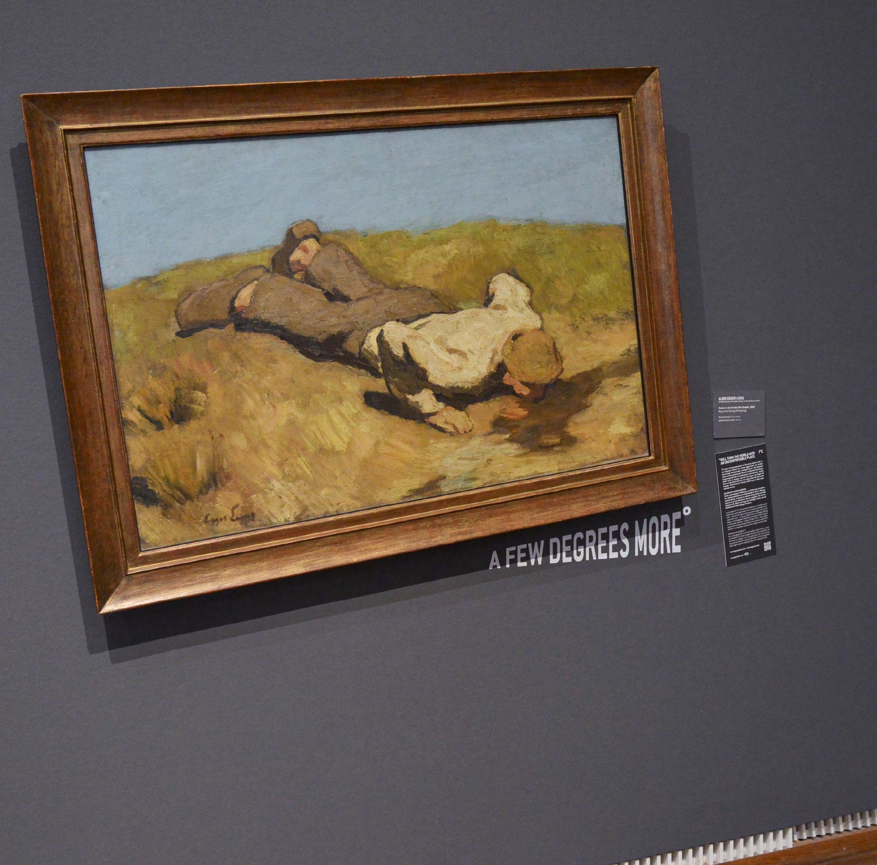 Algo anda torcido en el Museo Leopold de Viena. Obras maestras de Klimt o Schiele cuelgan en un ángulo equivocado de varios grados, en una metáfora visual de cómo un pequeño aumento en la temperatura global del planeta puede tener efectos catastróficos. EFE
