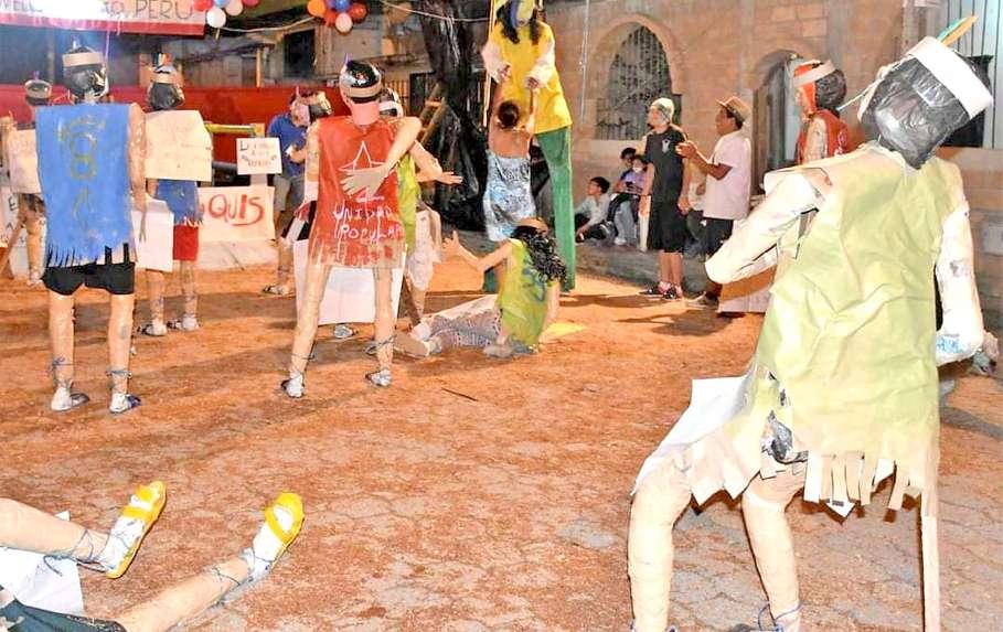 Como antesala de la quema, desde la 12:00, entre los barrios y comunidades se vive una fiesta de algarabía y humor, teniendo como protagonistas a las llamadas ‘locas viudas’, hombres que se disfrazan de mujeres y, con bailes, piden una ‘ayudita’ (dinero), para quemar a su viejo.