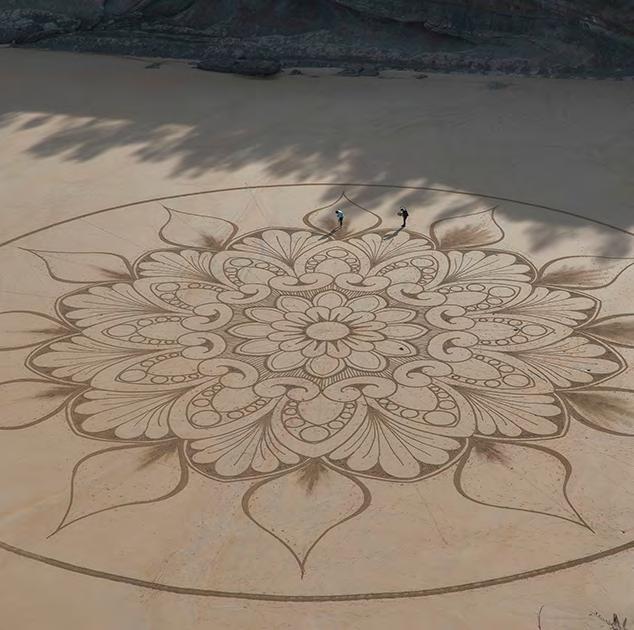 El artista Quirze Codina trazó el sábado “el mandala más grande del mundo” en la arena de la playa de Mataleñas, en Santander (España). Su obra, tuvo 66 metros de diámetro y se dibujó en una superficie de alrededor de 3.100 metros cuadrados con un rastrillo y una cuerda a modo de compás. EFE
