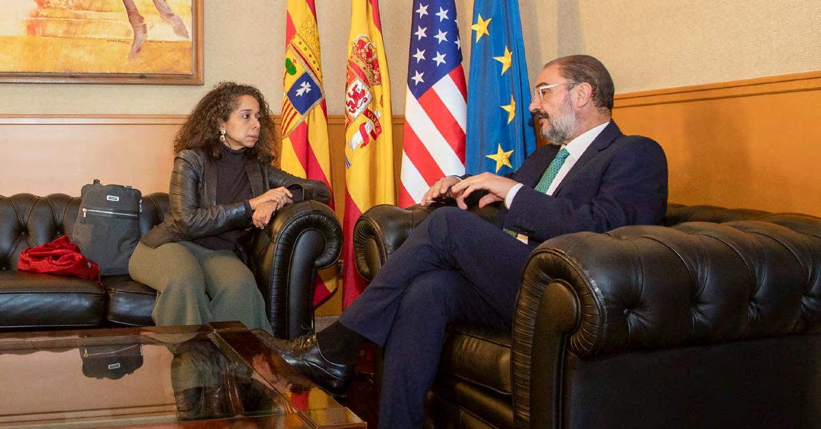REUNIÓN. El presidente de Aragón, Javier Lambán, y la embajadora de EE.UU en España, Julissa Reynoso.La